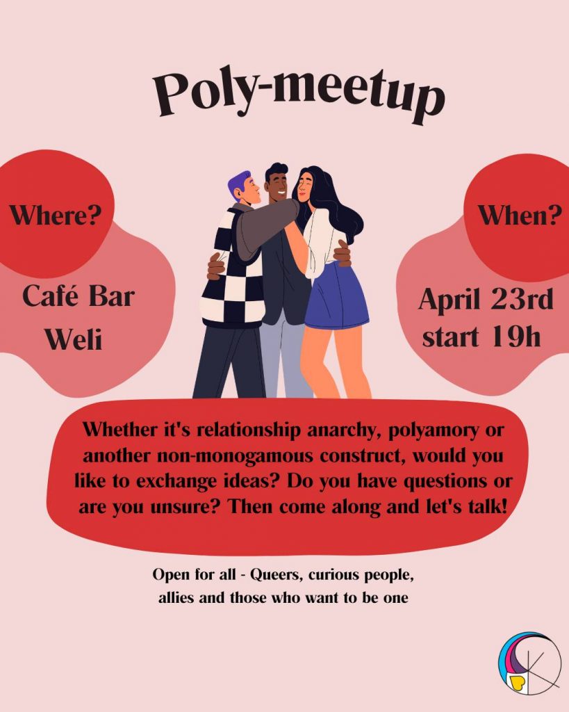 Whether it’s relationship anarchy, polyamory or another non-monogamous construct… Would you like to exchange ideas? Do you have questions or are you unsure whether being poly is something for you? Then come along and let’s talk! Everyone is welcome, no matter how queer you are, regardless of labels and affiliations!